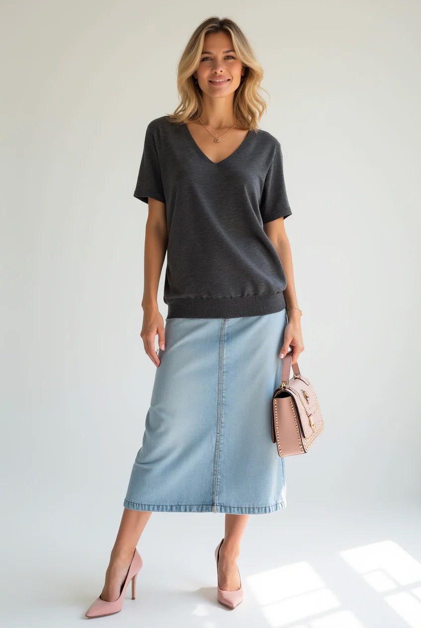 Merino-hedvábný top s krátkým rukávem SOFTY dark grey