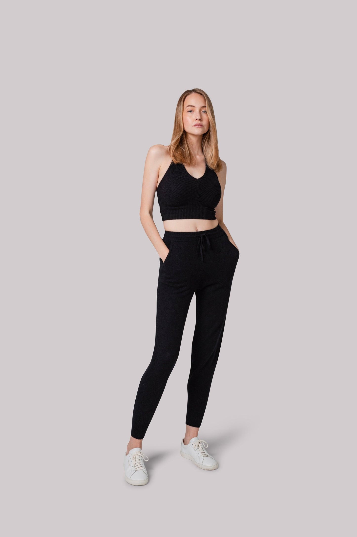Kašmírové teplákové kalhoty černé - JUSTLOVE