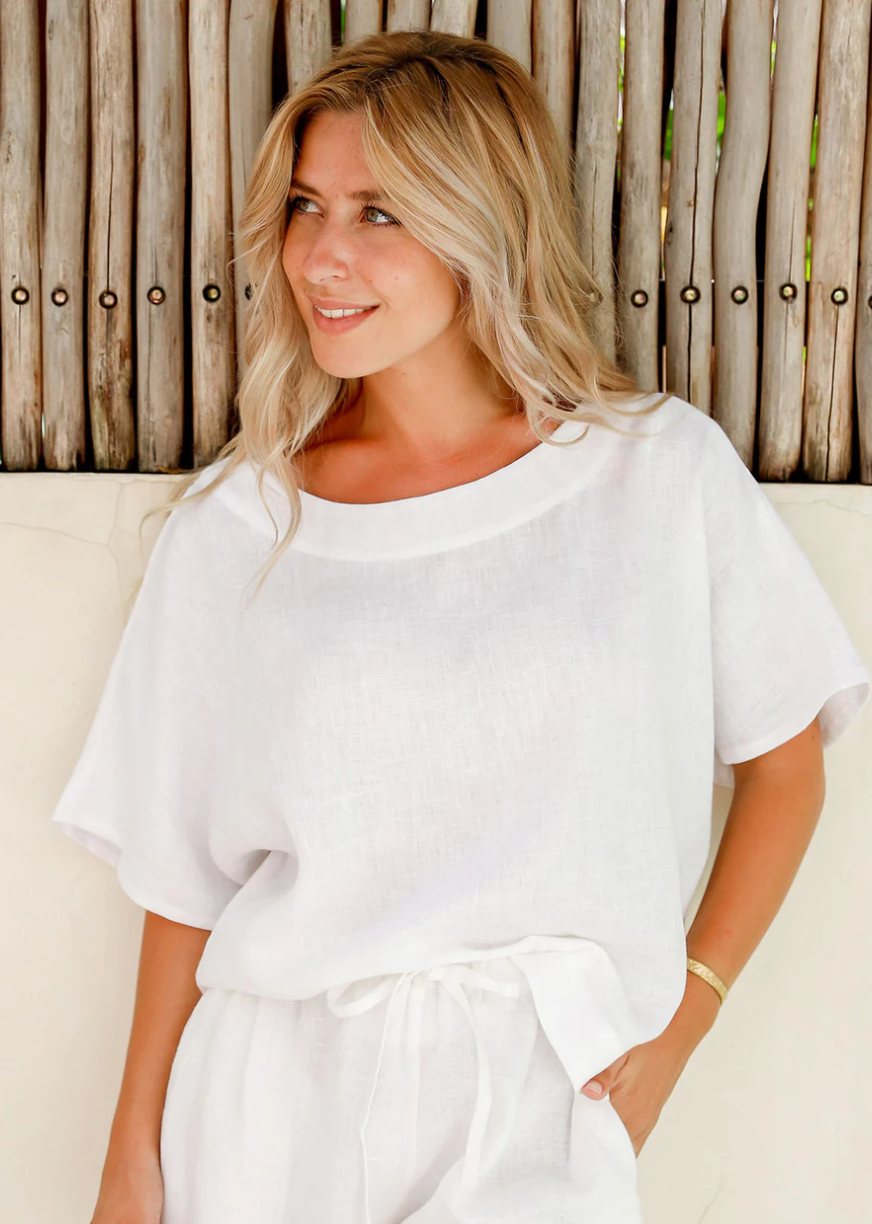 Top DEAUVILLE je vyroben ze 100% evropského lnu s certifikací OEKO-TEX®, který je přirozeně prodyšný, antibakteriální a hypoalergenní. Jedná se o minimalistický kousek, který v sobě spojuje ležérnost a eleganci. Díky kratšímu, volnému střihu a širokému lemu v dolní části krásně sedí na postavě a zároveň zůstává maximálně pohodlný. Široký výstřih jemně rámuje dekolt a ramena, aniž by působil příliš výrazně.