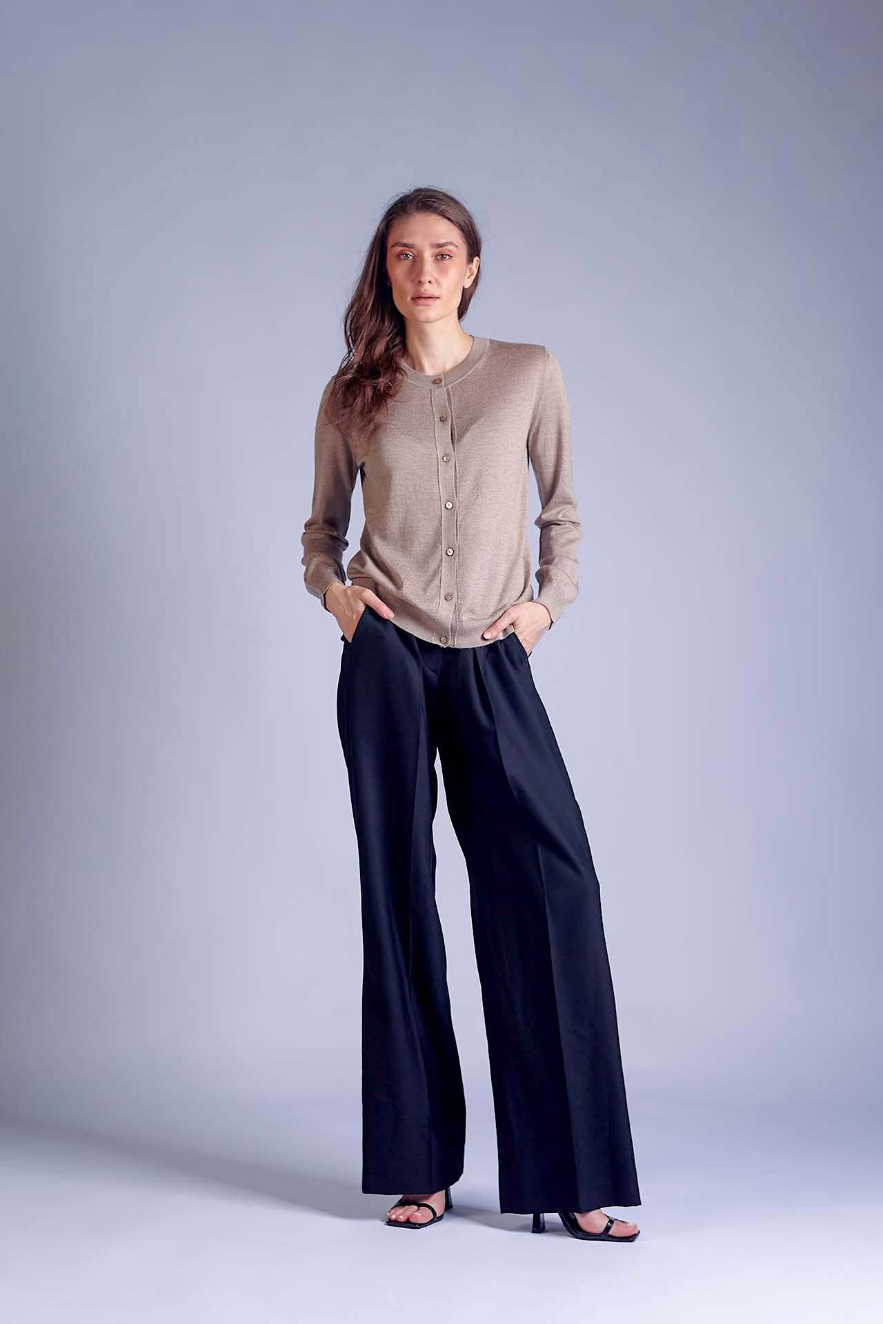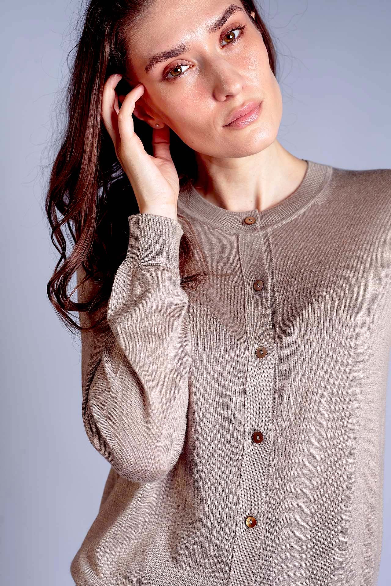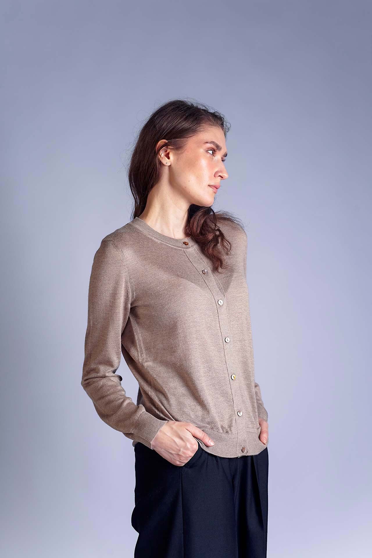 Introducing the pinnacle of luxury and elegance - a cashmere/silk cardigan with buttons in a natural organic color. Crafted from the finest grade A cashmere and Mulberry silk, this casual piece offers unprecedented comfort and style. The combination of soft cashmere and shiny silk creates a perfect visual and haptic experience. Buttons add sophistication and emphasize the luxurious character of this cardigan. This organic cardigan is a timeless investment in your wardrobe that will never go out of style.