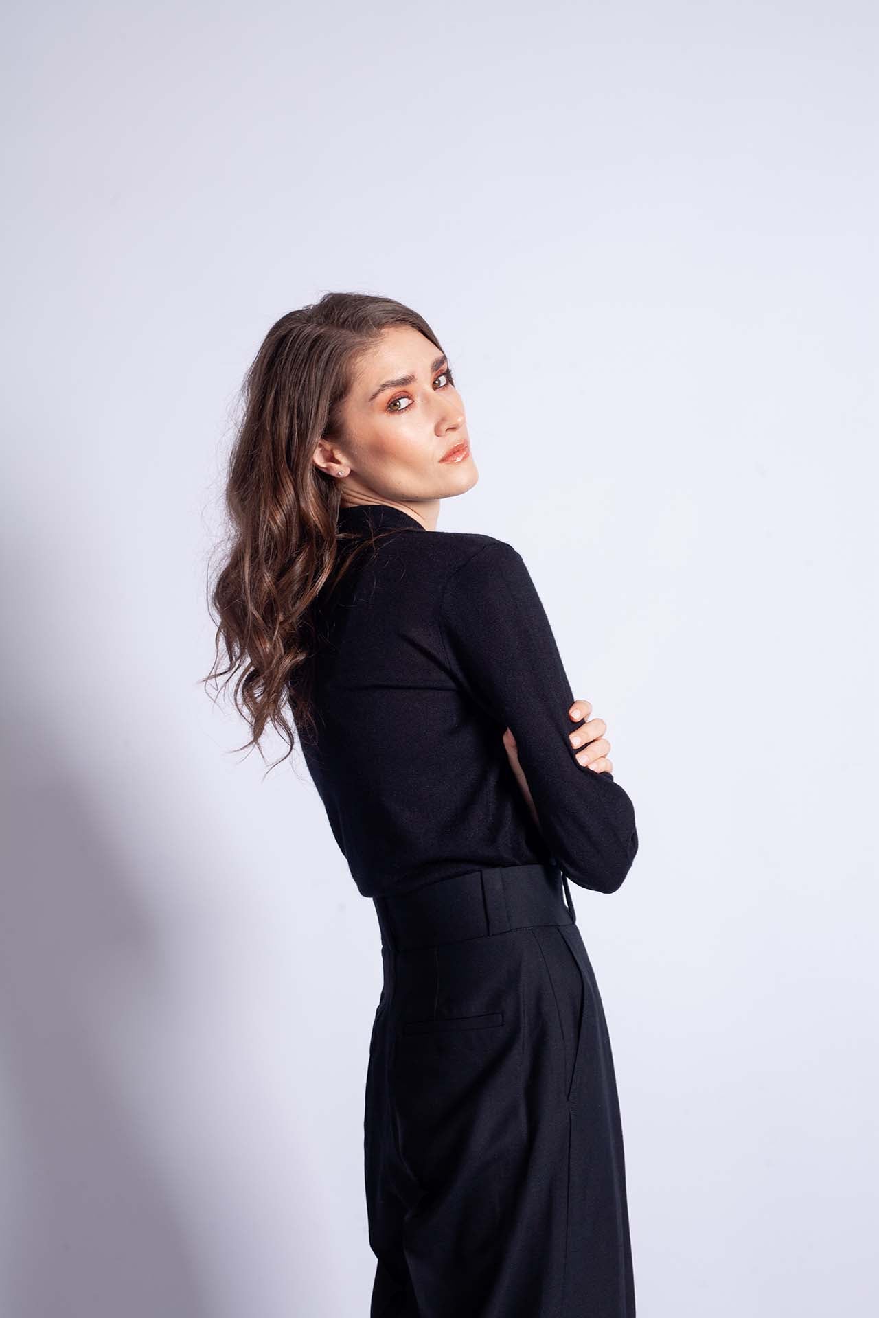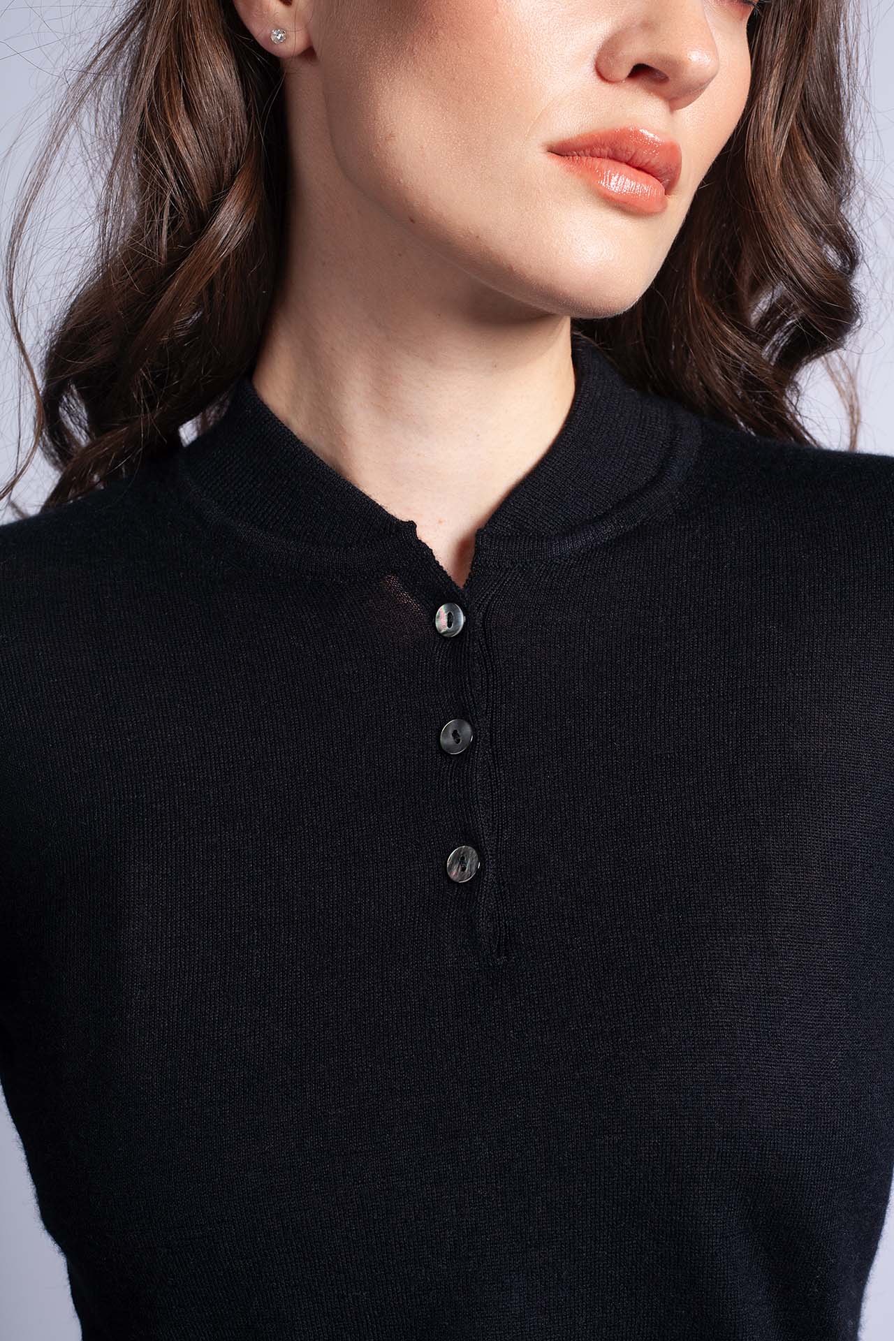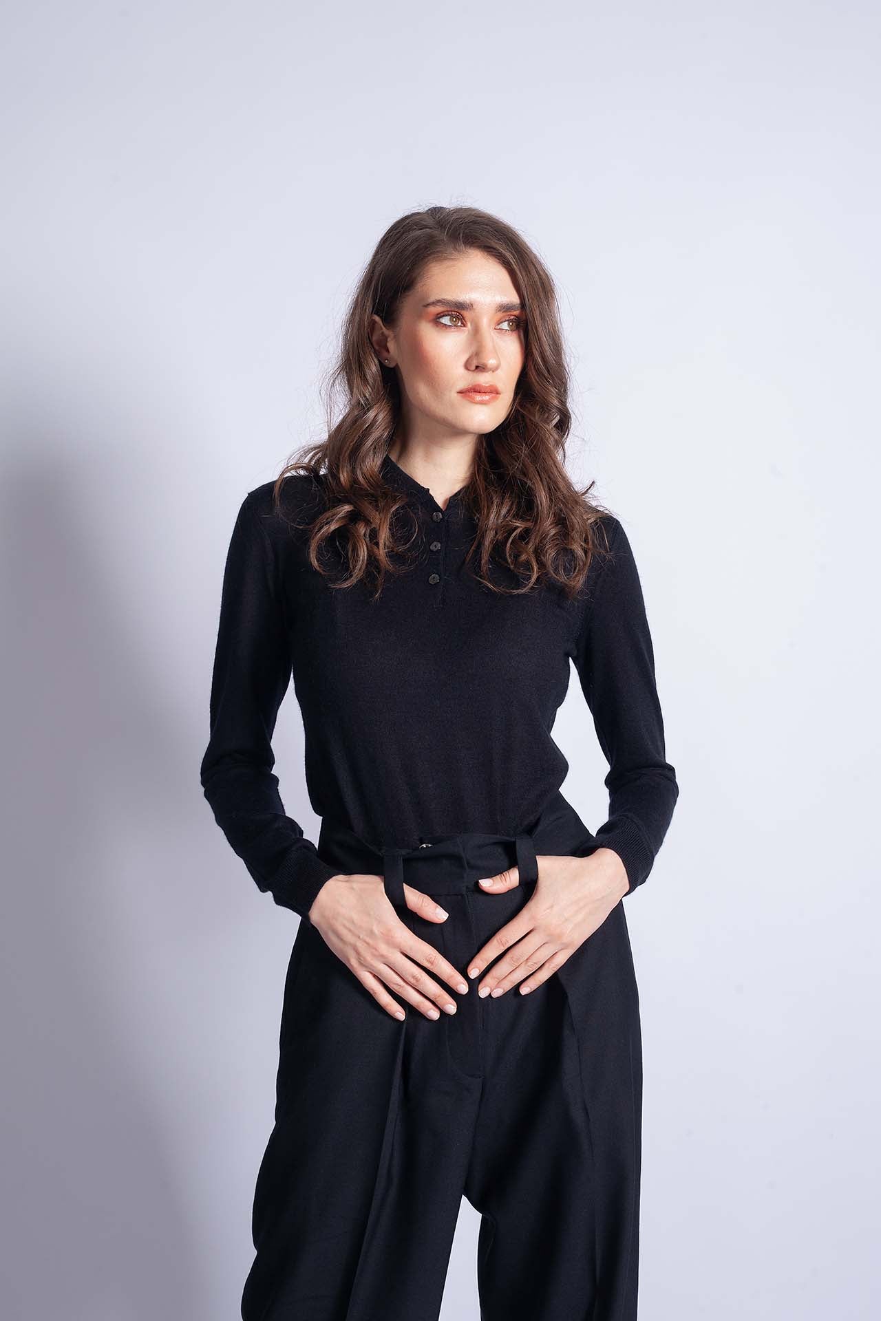 Introducing the pinnacle of luxury and elegance - the cashmere/silk button-up top in black. Crafted from the finest grade A cashmere and Mulberry silk, this casual piece offers unparalleled comfort and style. The combination of fine cashmere and lustrous silk creates a perfect visual and haptic experience. The buttons add sophistication and emphasize the luxurious character of this top. This black top is a timeless investment in your wardrobe that will never go out of style.
