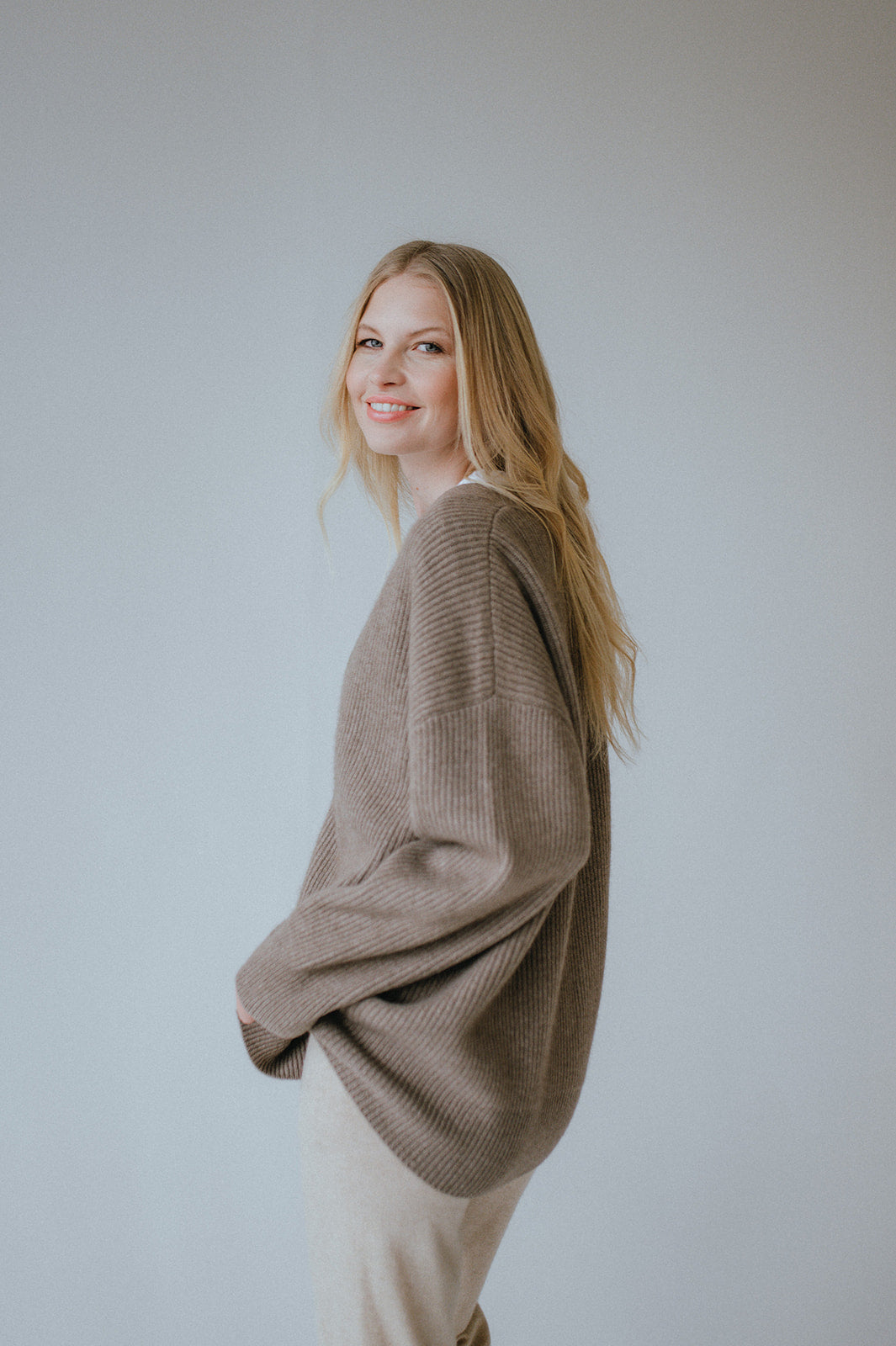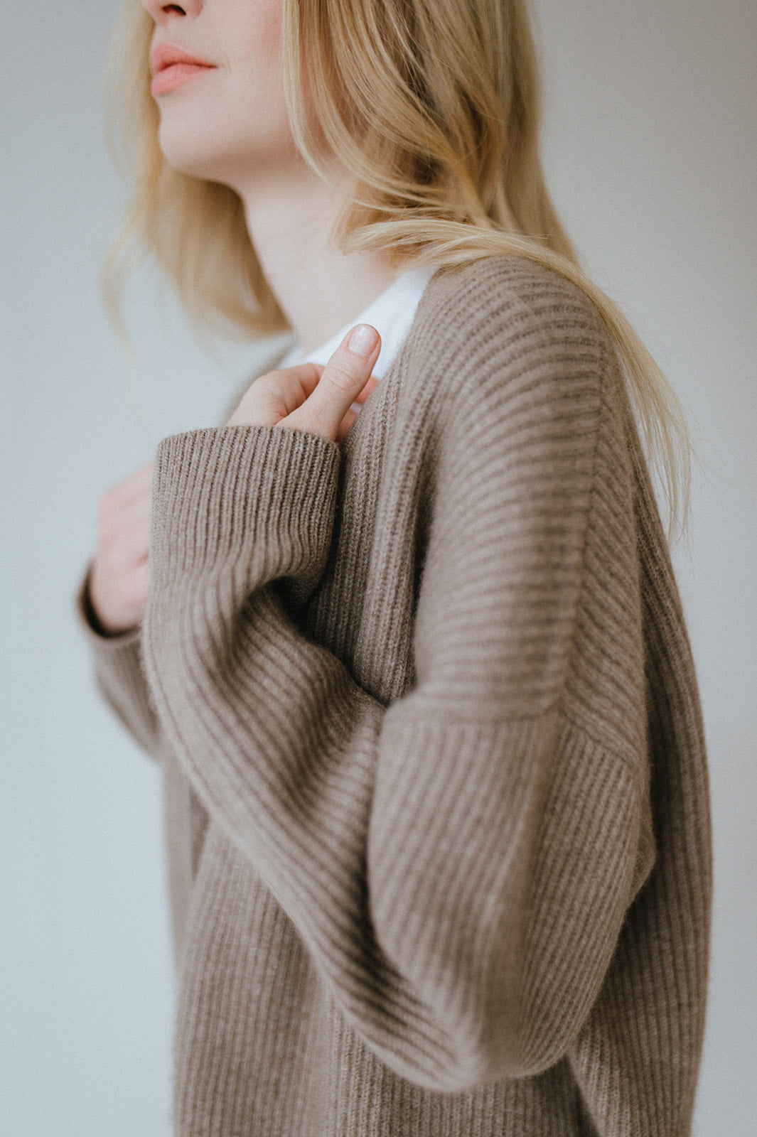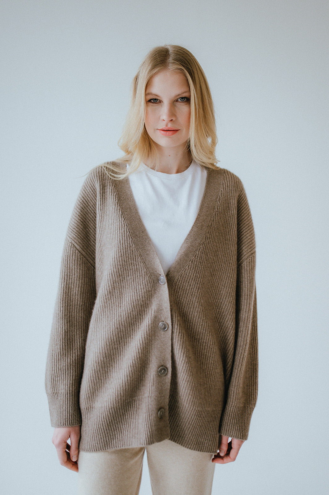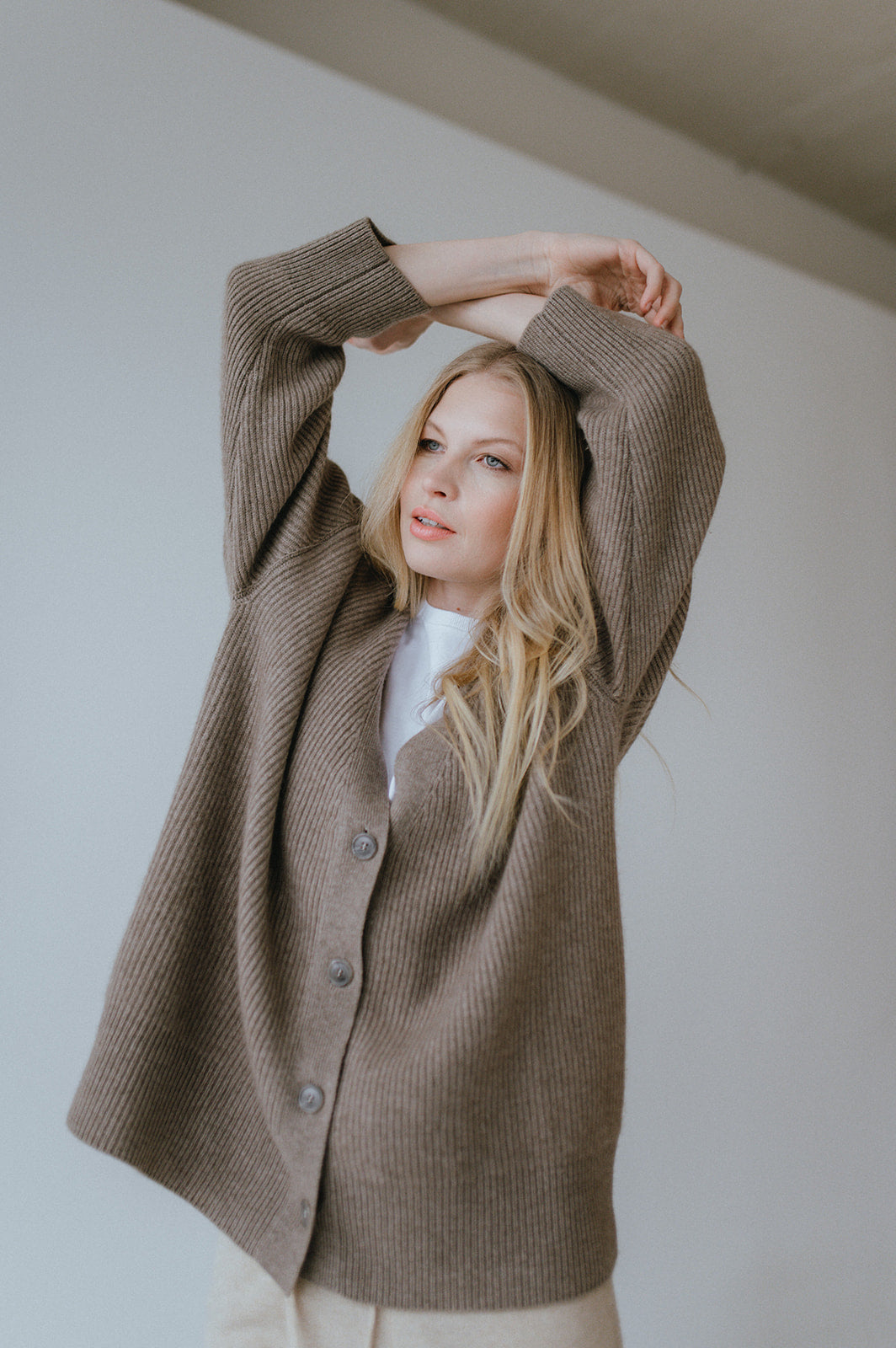This oversized cashmere cardigan is part of our exclusive collection for fashion connoisseurs. It comes in a natural organic brown color, in a minimalist style. Ideal for complementing minimalist boyfriend style outfits or as a nice warm addition to a purely feminine outfit.