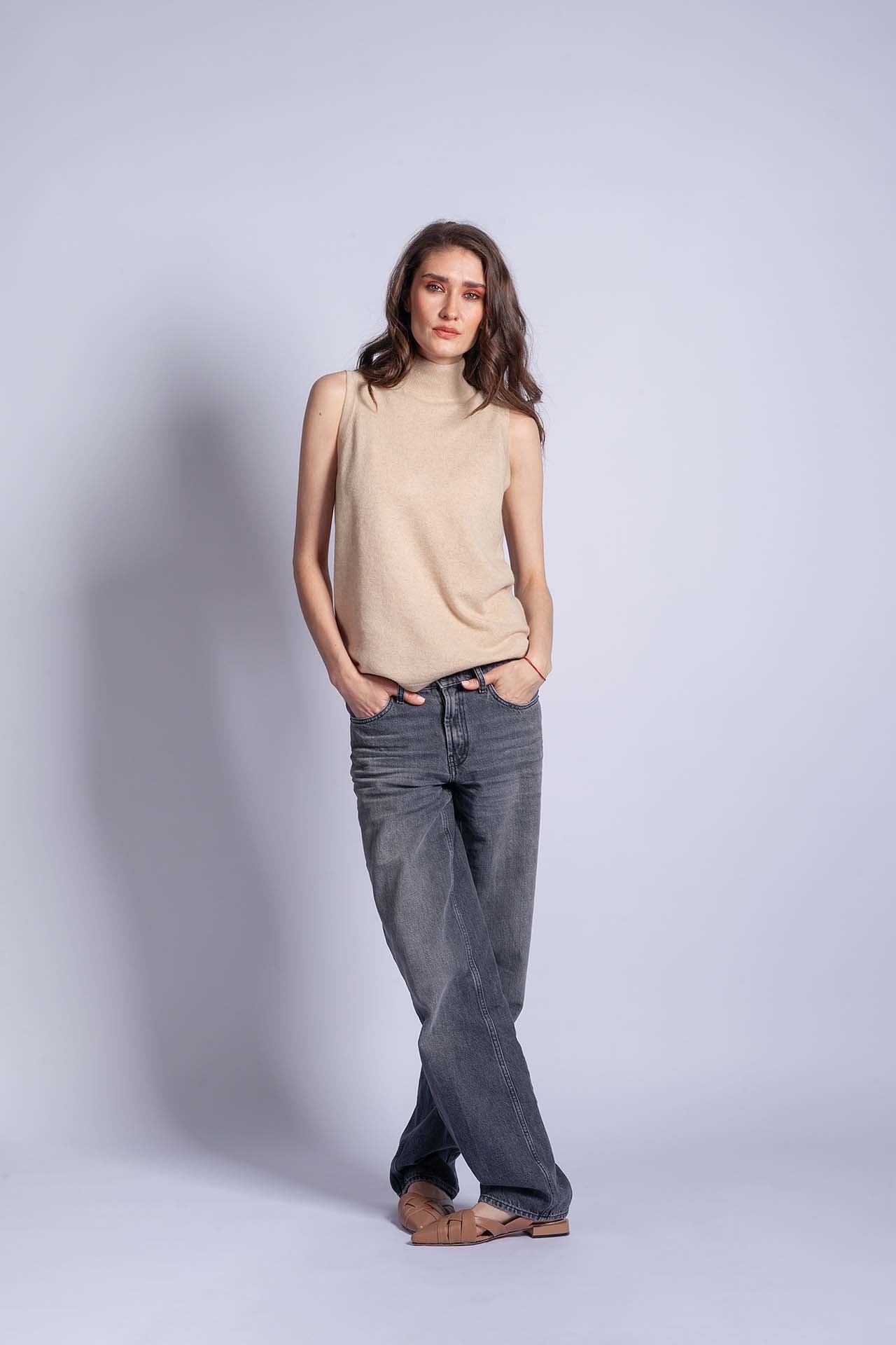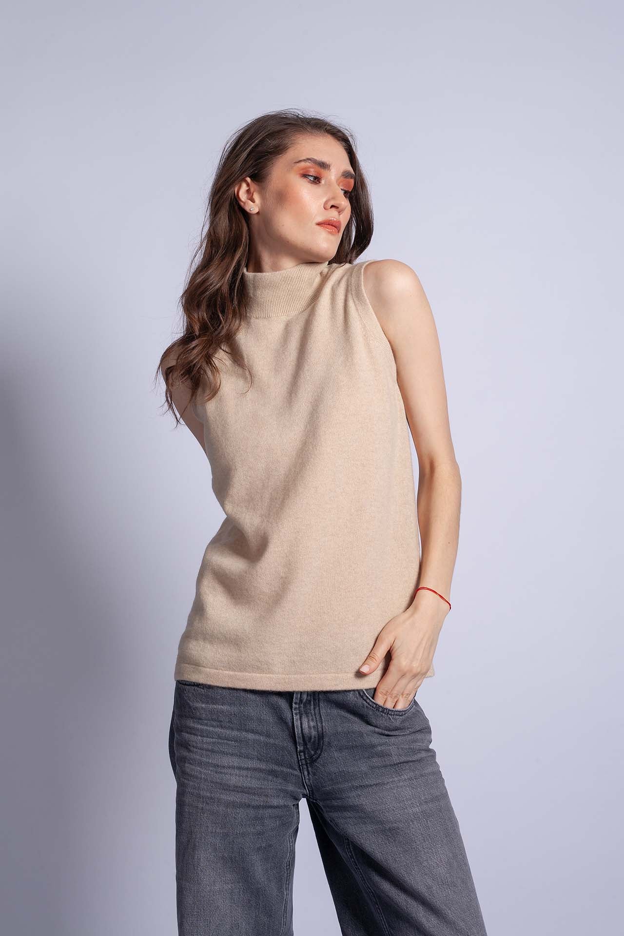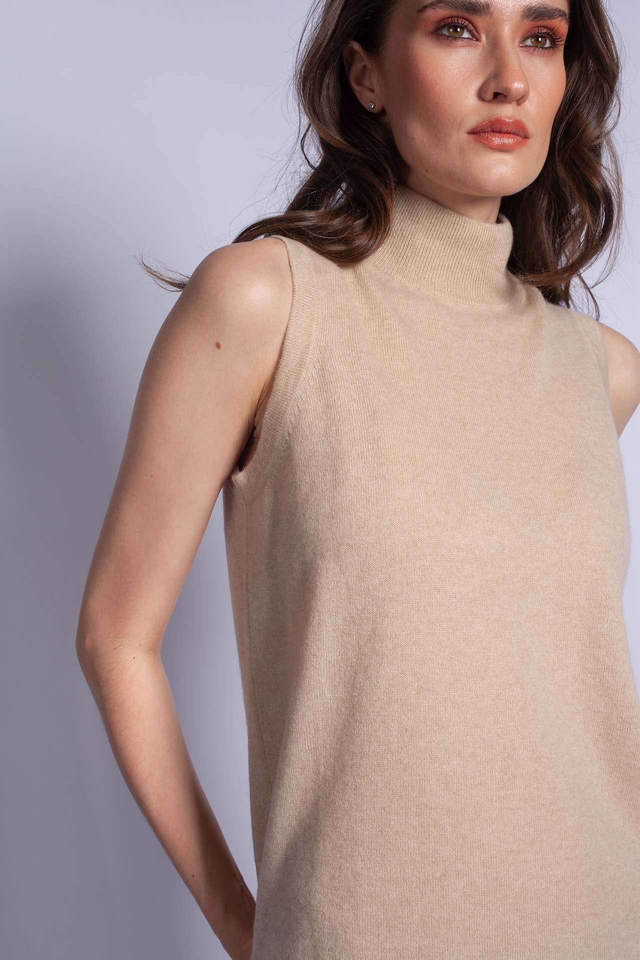 The SENSUAL top made of 100% grade A cashmere is proof that true comfort can be unexpectedly attractive at the same time. The minimalist sleeveless cut, loosely hugging the body, accentuates the silhouette without unnecessary effort. The turtleneck collar adds elegance and creates a visual balance between casualness and nobility.