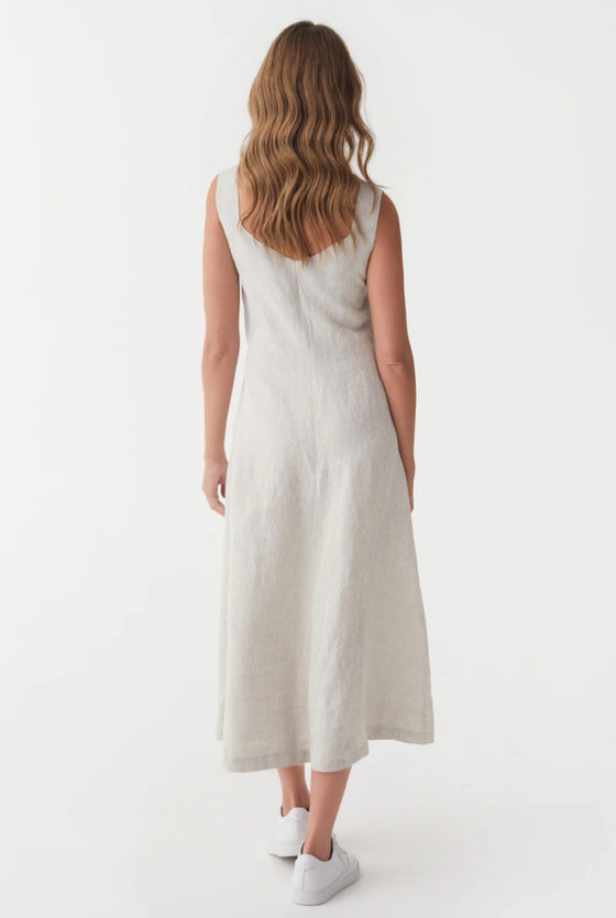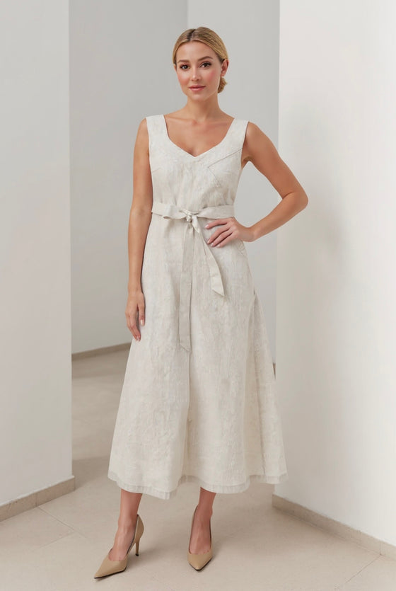 Šaty BIARRITZ jsou vyrobeny ze 100% evropského lnu s certifikací OEKO-TEX®, který je přirozeně prodyšný, antibakteriální a hypoalergenní. Jsou navržené pro chvíle, kdy se chcete cítit pohodlně, ale zároveň upraveně a sebevědomě. Mají čistý, ženský střih bez rukávů, hlubší výstřih do V a jemné členění v pase, které vytváří přirozeně lichotivou siluetu. Pásek ze stejného materiálu můžete uvázat na několik způsobů – podle nálady, nebo podle toho, kam právě míříte.