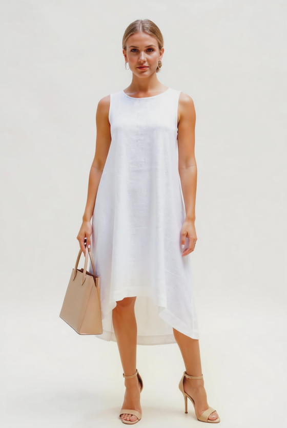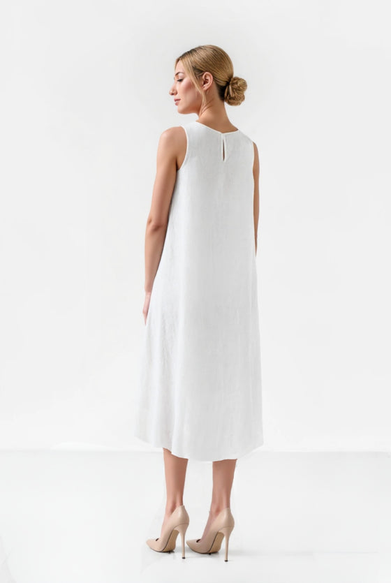 Šaty ST. TROPEZ jsou vyrobeny ze 100% evropského lnu s certifikací OEKO-TEX®, který je přirozeně prodyšný, antibakteriální a hypoalergenní. Mají minimalistický design s kulatým výstřihem a elegantním střihem bez rukávů, který zvýrazňuje ramena a zajišťuje maximální pohodlí během horkých letních dnů. Střih je volný a relaxovaný s áčkovou siluetou, která lichotí každé postavě a umožňuje přirozenou volnost pohybu.